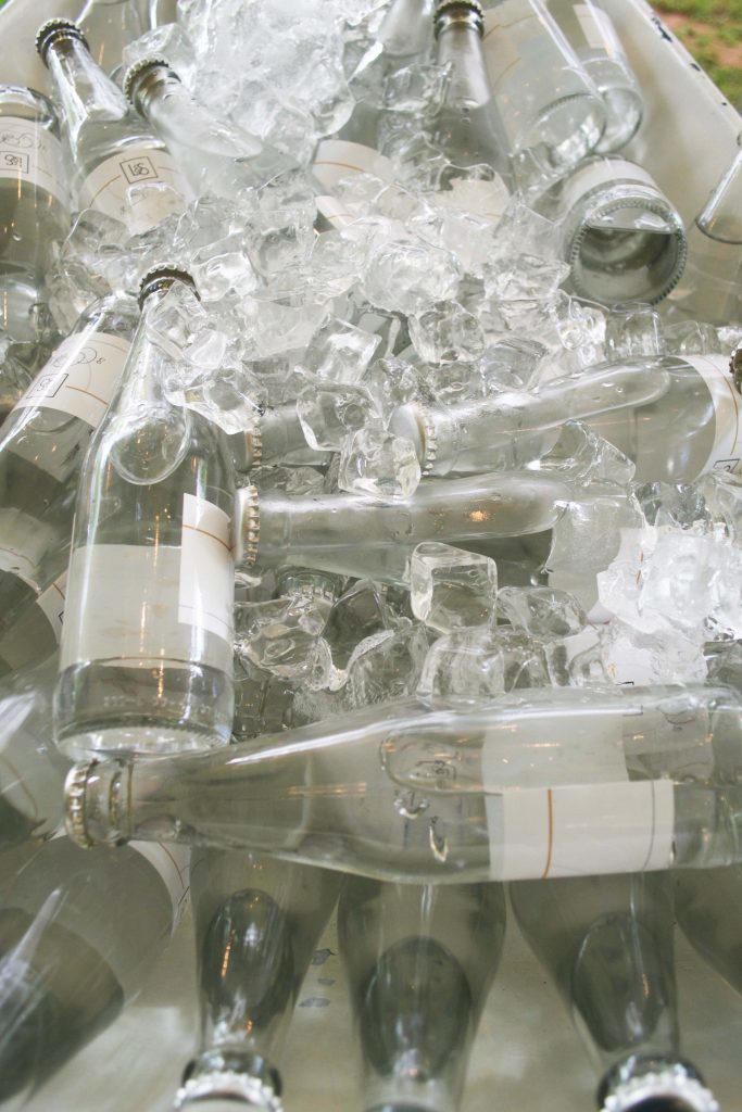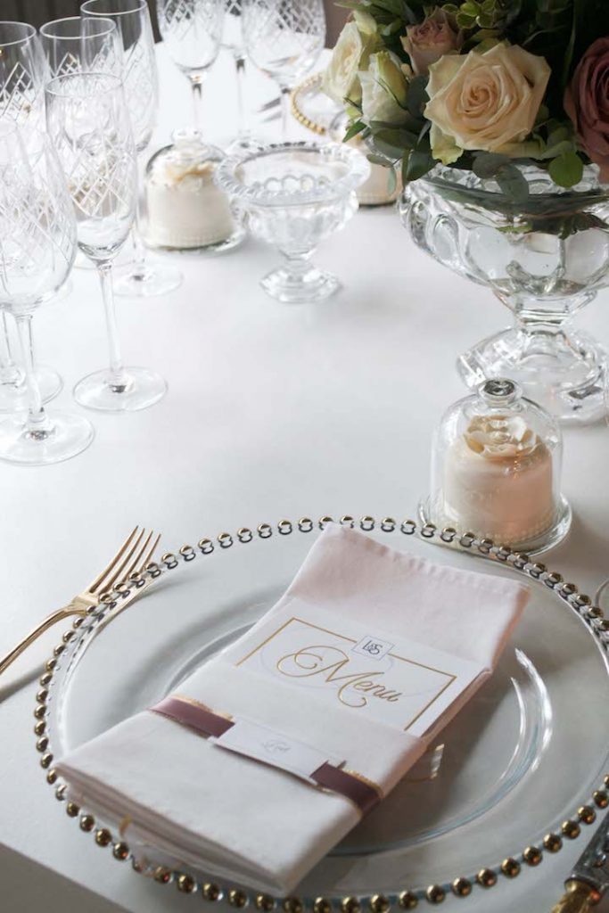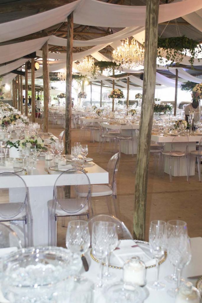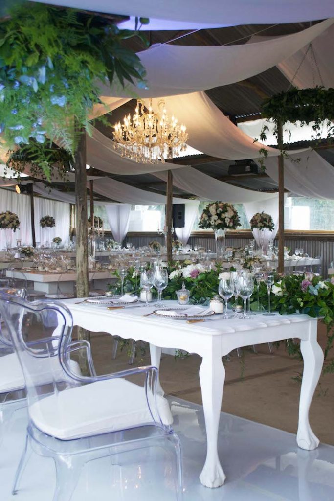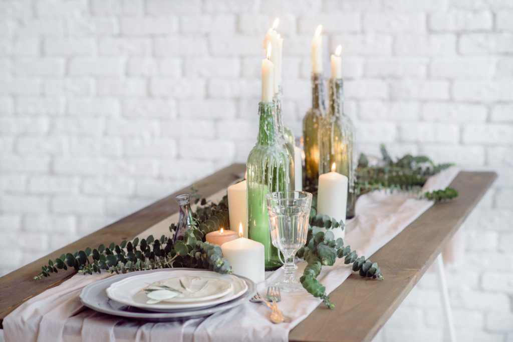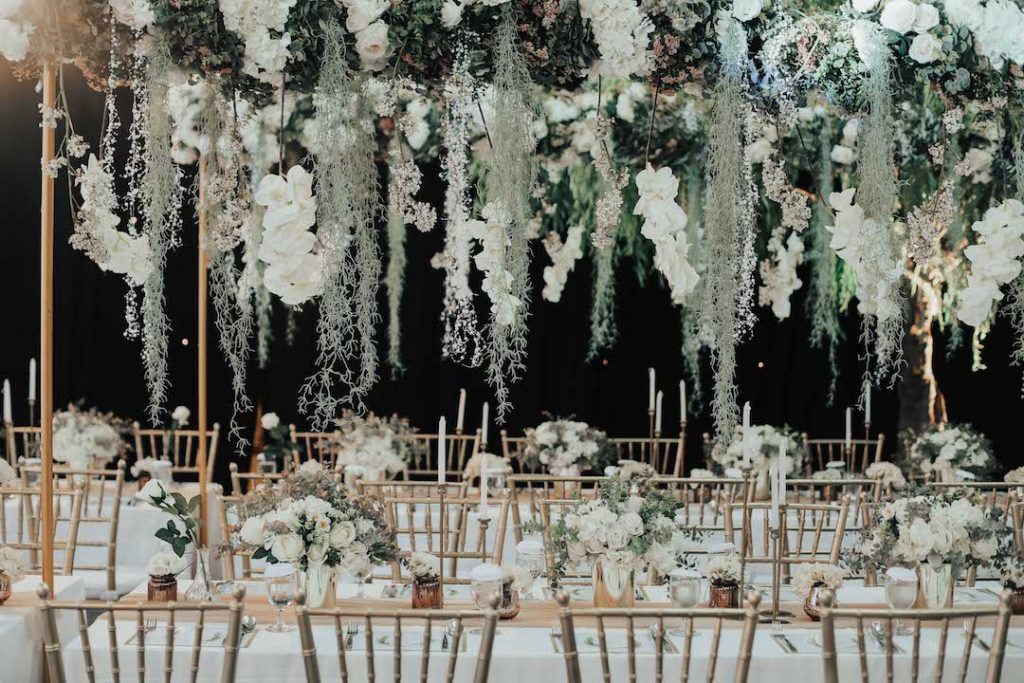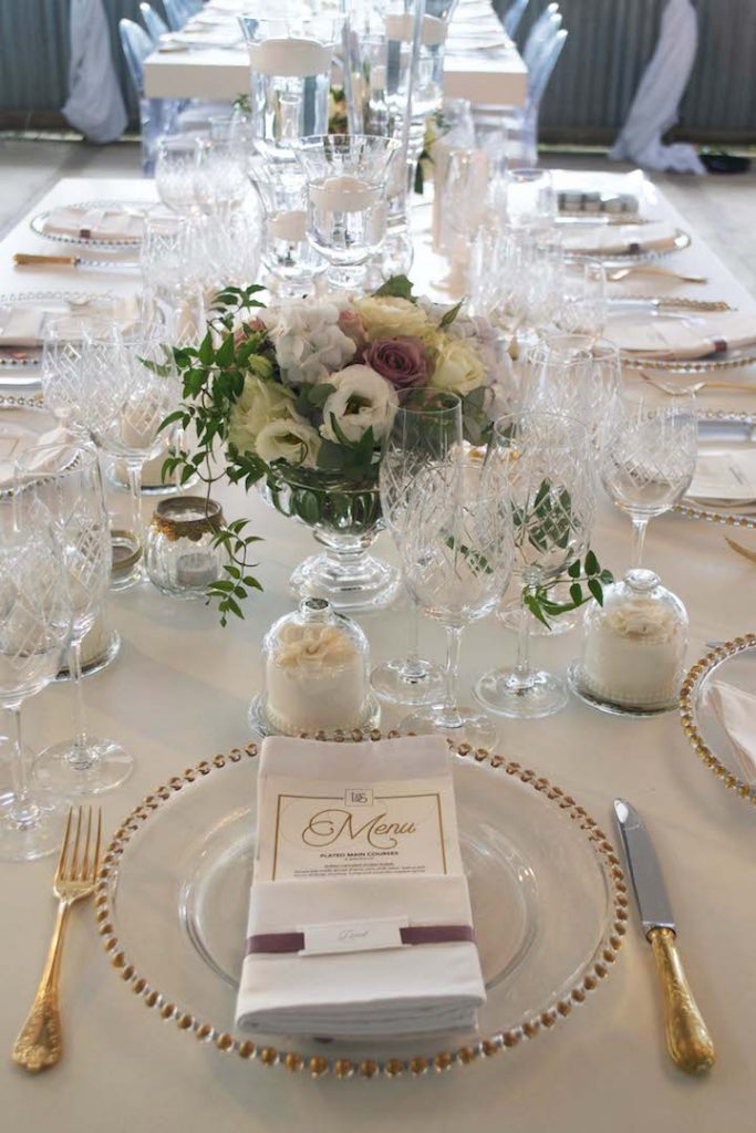Table decor with white flowers and candles for a wedding party