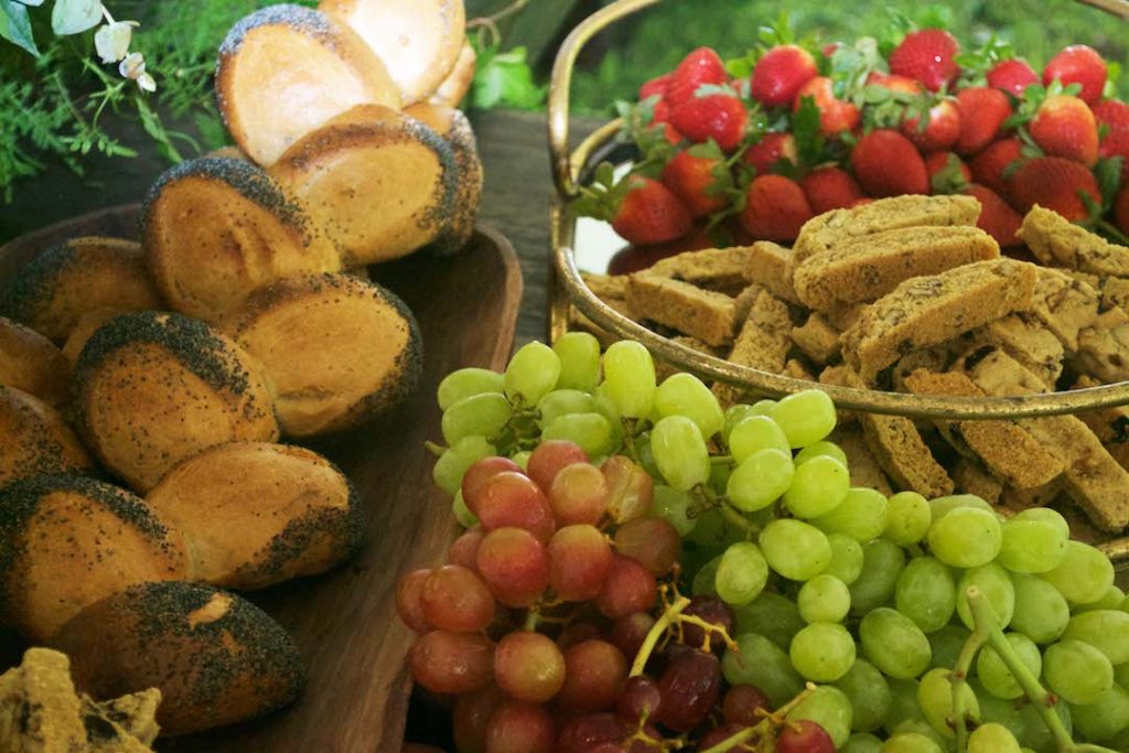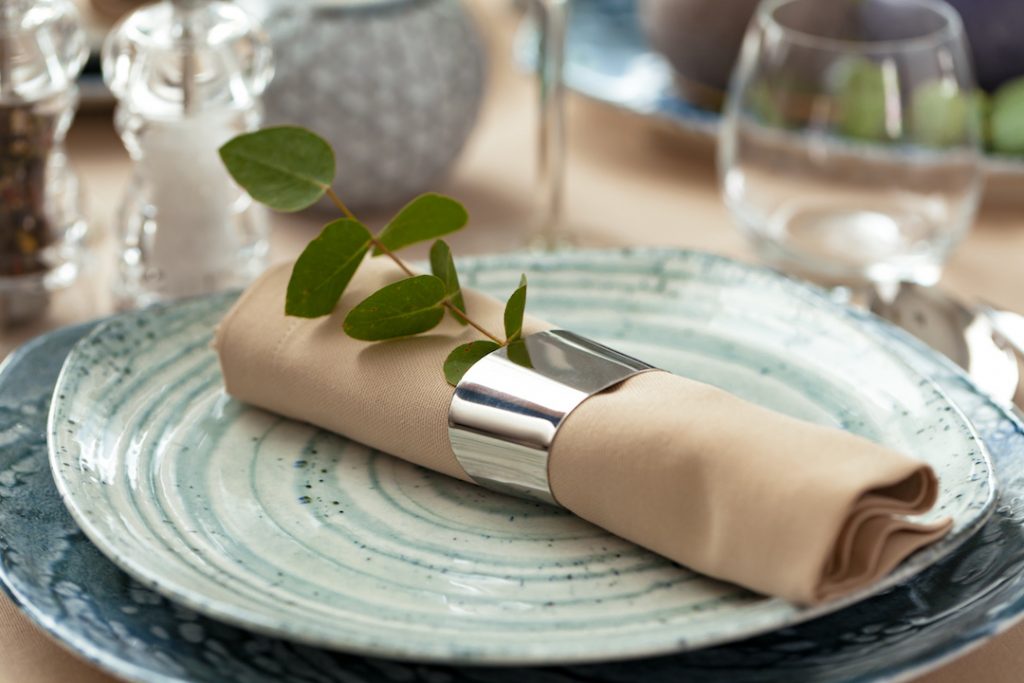 Stylish serving on a green ceramic plate with cotton napkin