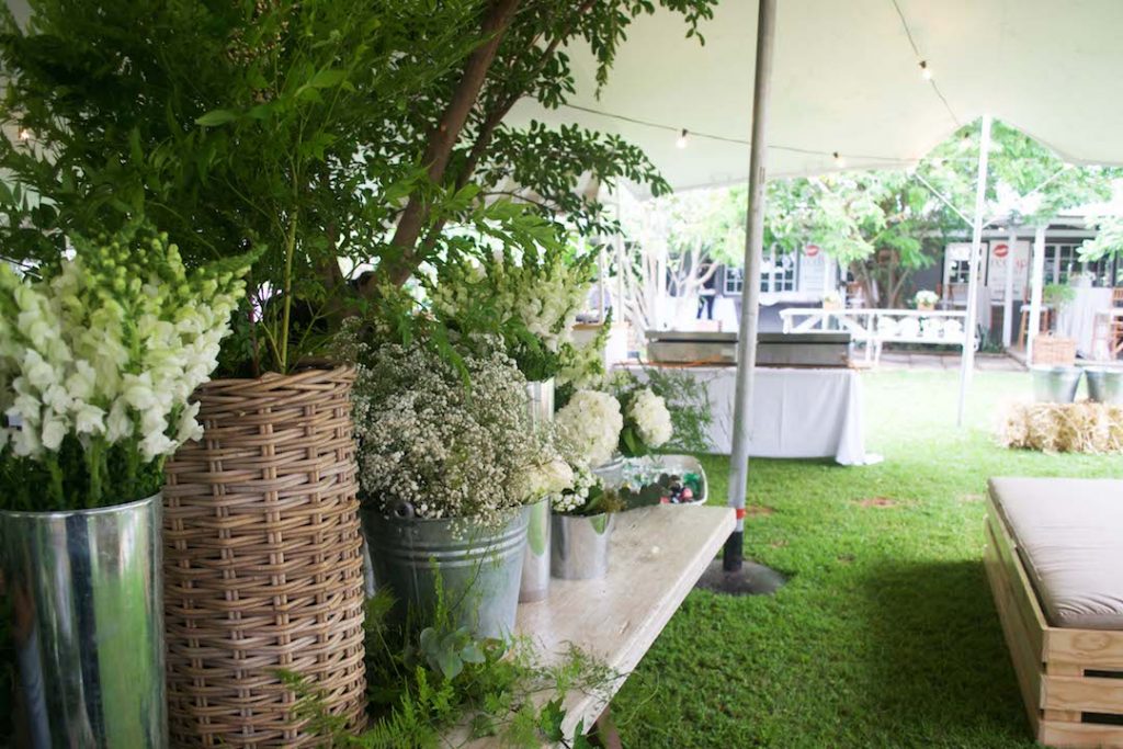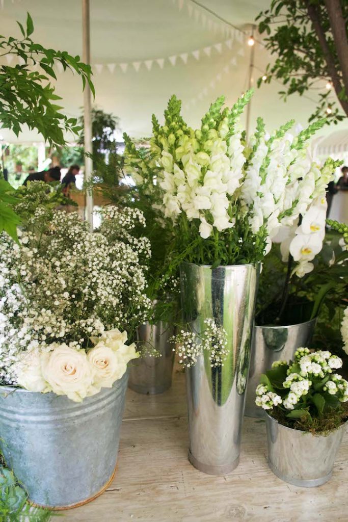 Lots of hydrangeas, roses and pinks make a colorful wall